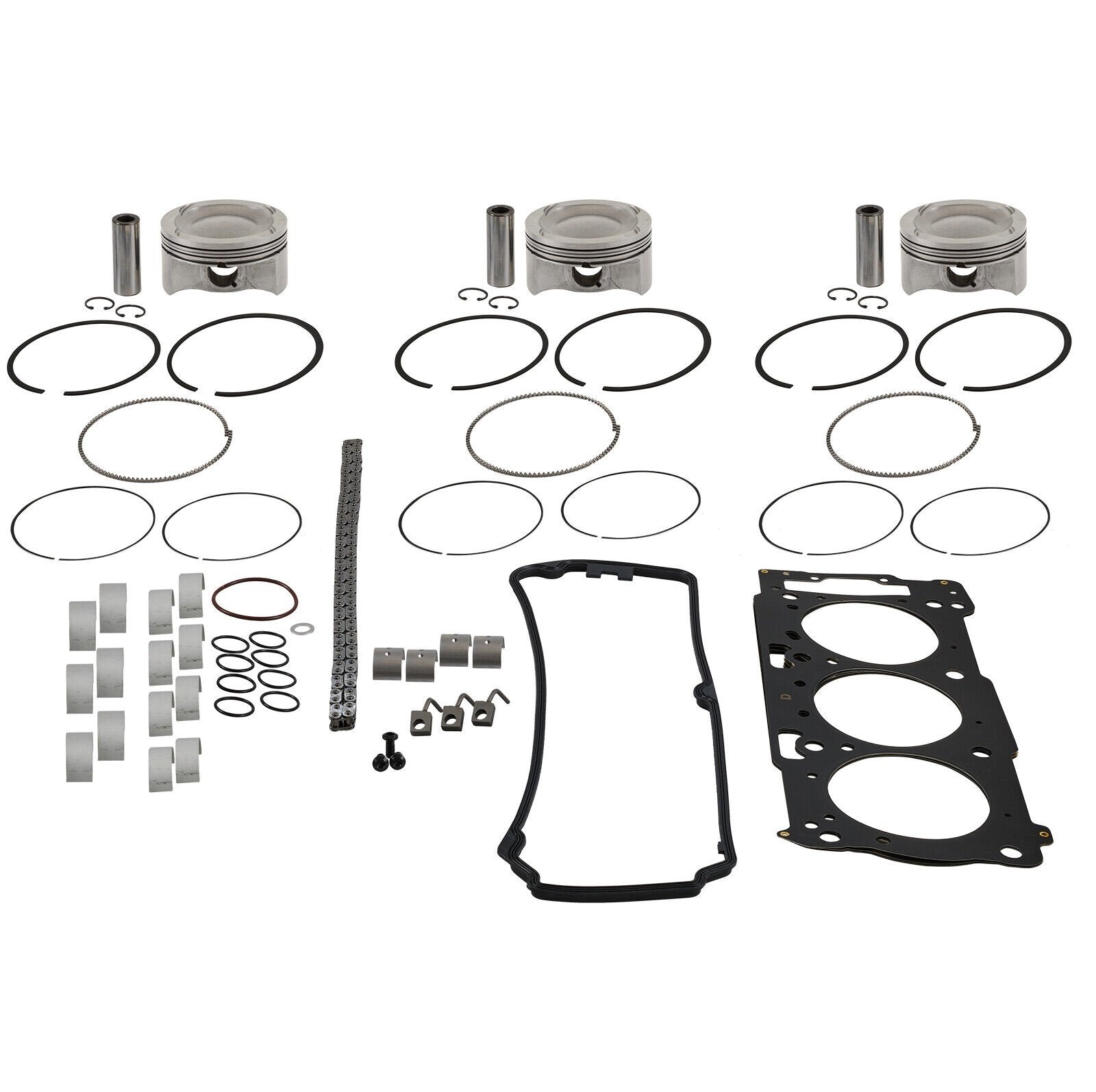 SBT Engine Rebuild Kit for 4-Stroke Sea-Doo (non 300 & Spark) MotorsKit Includes:4-Stroke Counter Balance Shaft Bearing Set4-Stroke Main Bearings4-Stroke Rod BearingsInternal Gasket KitSBT 4-Stroke Timing ChainOil Spray Nozzle KitPiston & Rings Set (3)